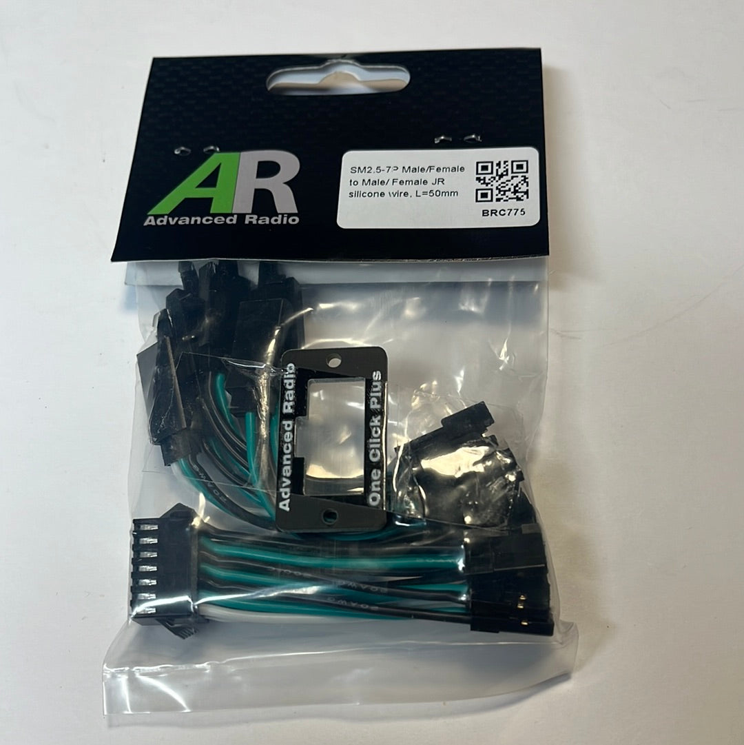 The AR one click comes standard with 6 Sets of independent 20AWG silicone wire and gold plated servo pins so you can connect completely different power systems together with one simple One Click + connector providing you with the best connection for your high powered models. And 20AWG silicon wire allowing for maximum current flow for high powered applications.