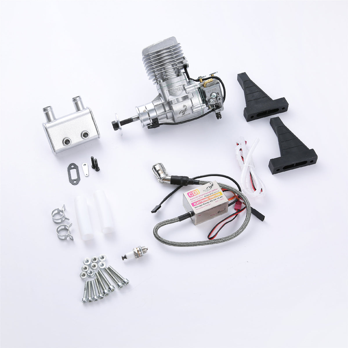 - RCGF Stinger Engine package Includes: electronic CDI ignition, muffler, spark plug, gaskets, bolts, throttle arm extension & manual.